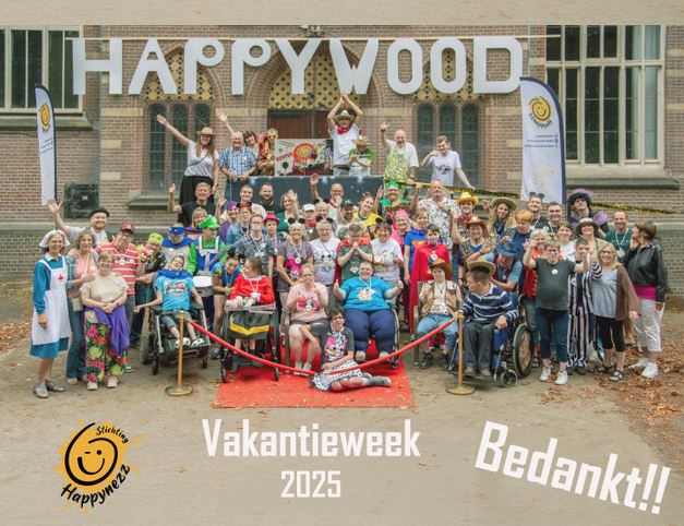 Ook dit jaar biedt de HH financiële steun aan de vakantieweek voor mensen met een verstandelijke of meervoudige beperking. Dit is niet alleen een leuke vakantieweek voor mensen met een beperking, maar ook een week ontlasting van mensen van het thuisfront. Na een lange voorbereiding was het dan zover: van 21-7 t/m 26-7 konden de gasten van de stichting Happynezz een week vakantie vieren in het seminarie hotel in Hoeven. Hier hadden 32 gasten en 40 vrijwilligers een fantastische week. Dit jaar was het thema: Happywood.